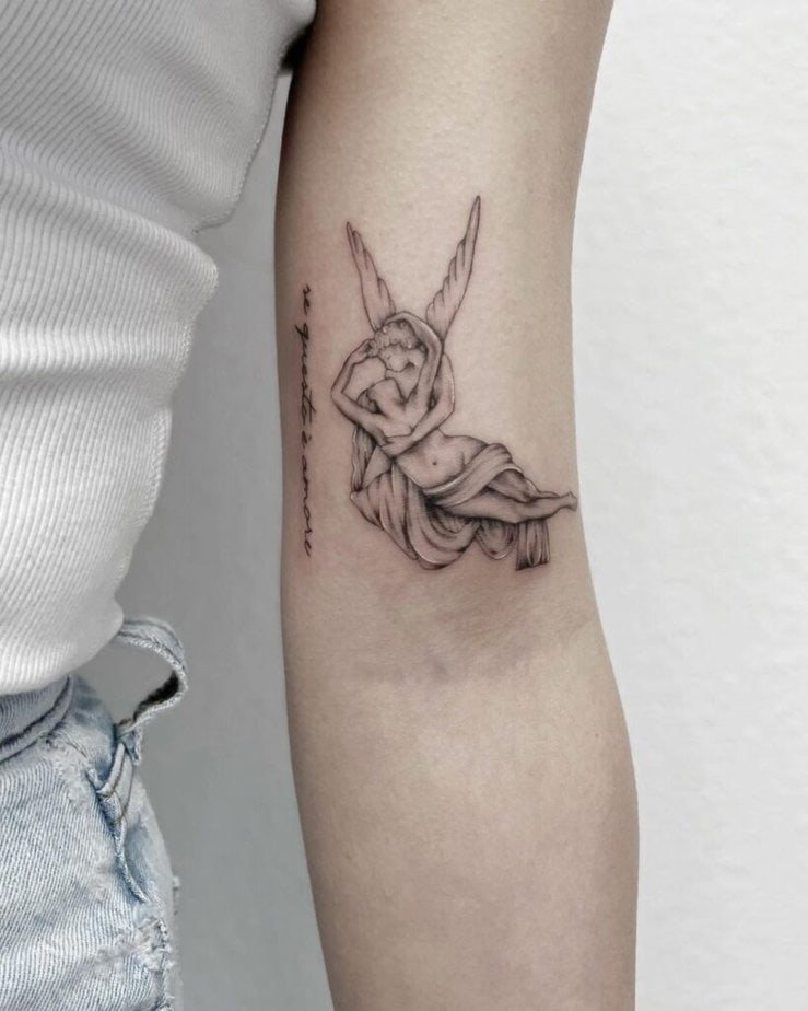 If classical art makes you feel seen, a tattoo of a sculpture — like Psyche Revived by Cupid’s Kiss — is a delicate way to wear your admiration for beauty every day.