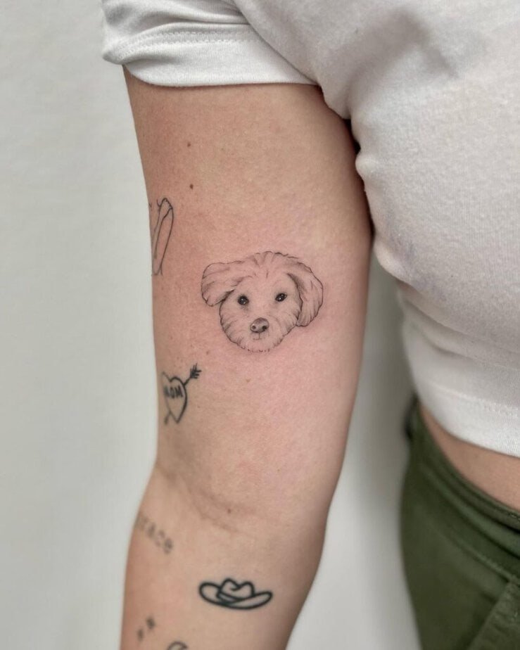 Got a fluffy buddy? Putting their face on your bicep is silly and sweet — your pup might be confused at first, but honestly, it’s a forever love letter.
