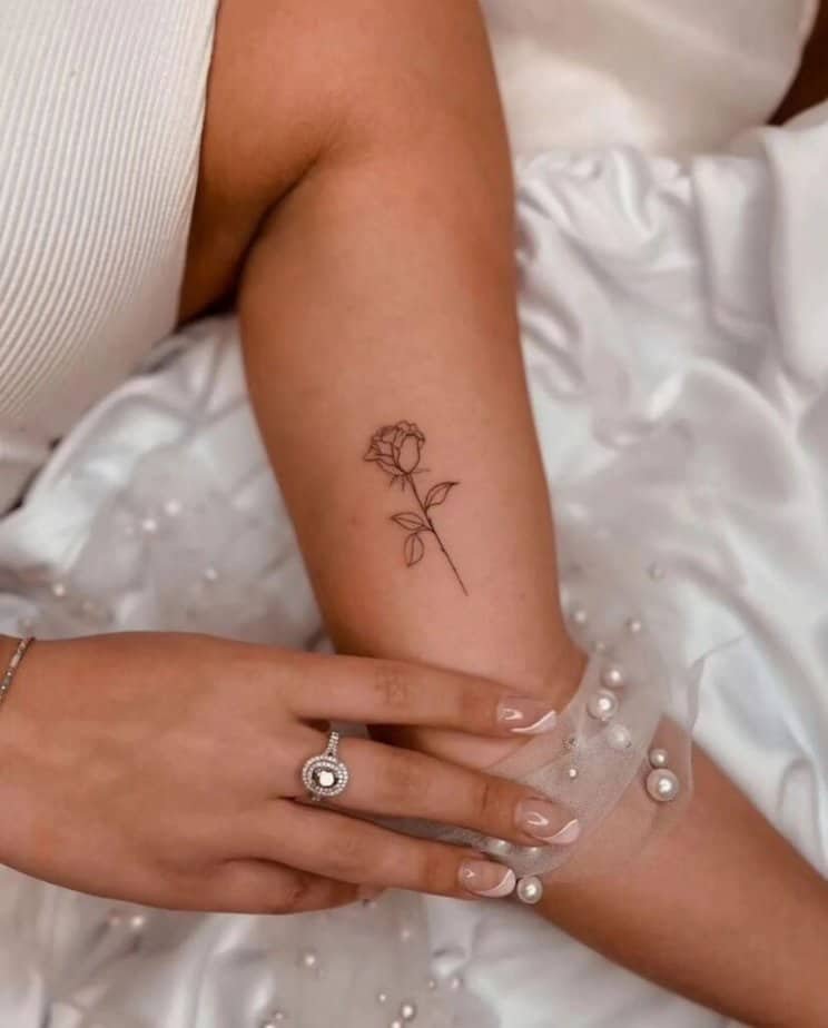 Roses are everywhere for a reason. If you want that classic symbol but prefer something minimal, a small rose on the bicep is perfect — romantic without being over the top.