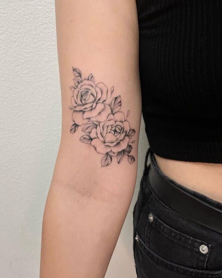 If you like roses but want something that fills more space, a larger black-and-gray rose piece can be gorgeous. You could always add color later, but this look ages beautifully as-is.