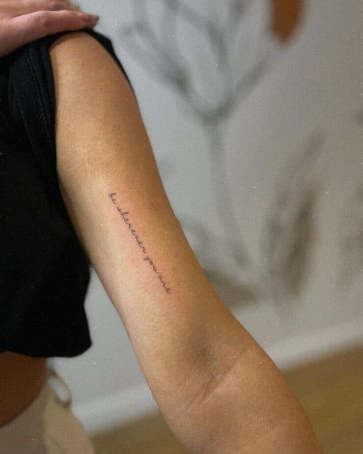 Your bicep is a perfect spot for that phrase that keeps you steady. Choose the font that feels like you, and let the ink do the talking on days when words feel heavy.