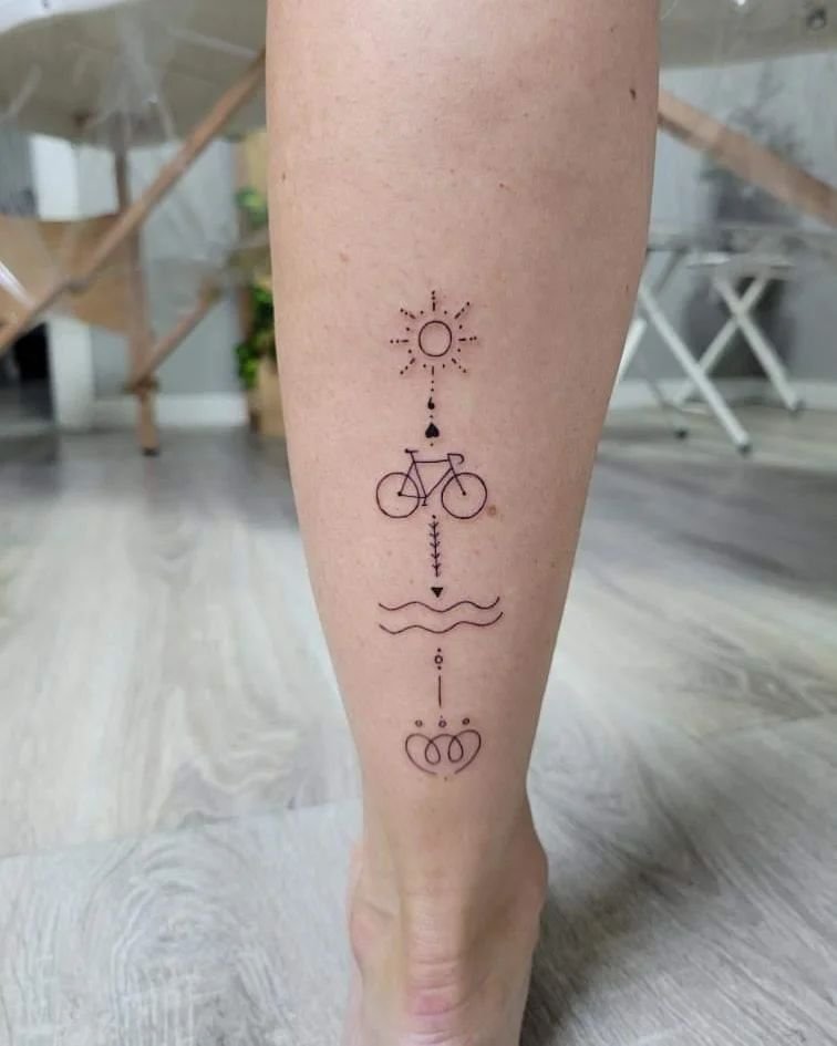 Fine-line tattoos are quietly elegant, and a bike like this reads as both simple and meaningful. It’s perfect if you want clarity without heaviness.