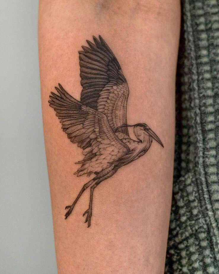 For lovers of the abstract, this crow leaves behind black traces, which feel symbolic of spiritual messages. It’s moody and thought-provoking — the kind of tattoo that invites questions and quiet reflection.