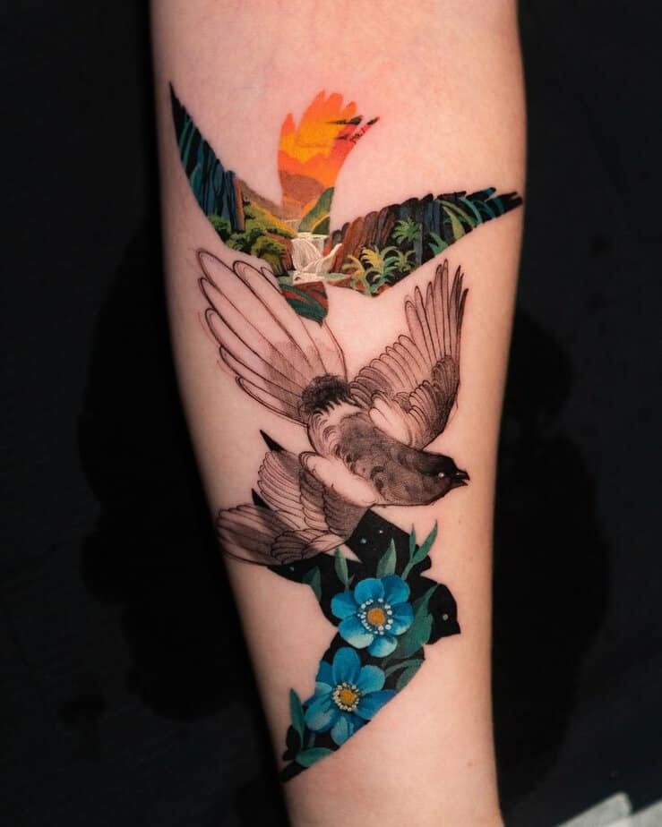 Bird tattoos have this gentle way of feeling both timeless and personal, don’t they? I’ve always loved how a tiny feather or a little bird in flight can say so much — freedom, resilience, a nudge toward spirituality. Most of these designs lean into black-and-gray elegance, but don’t be surprised when a splash of color turns the whole thing into a mood. Here are some designs that caught my eye lately — each one feels like its own little story.