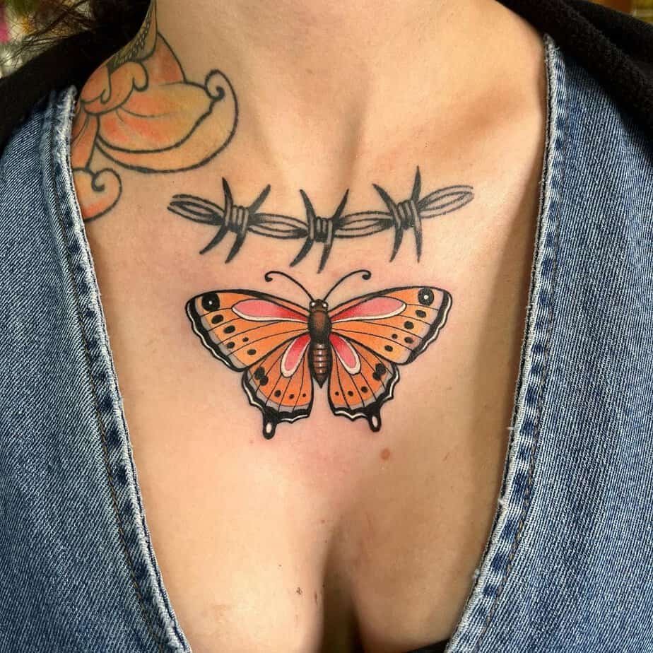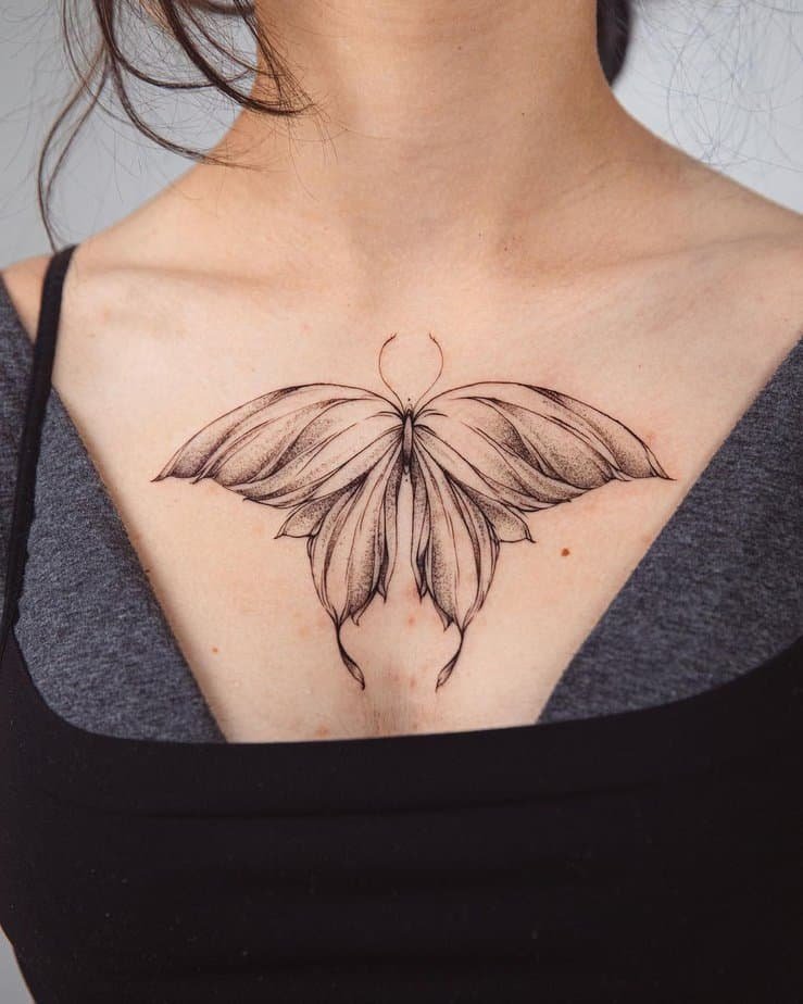 Anyway, whether you want tiny and quiet or big and dramatic, butterflies give you tons of room to make the design yours. If one of these caught your eye, save the picture and bring it to an artist you trust — they’ll help tweak it so it fits your chest perfectly. And tell me which one you’d pick — I’m nosy in the best way.
