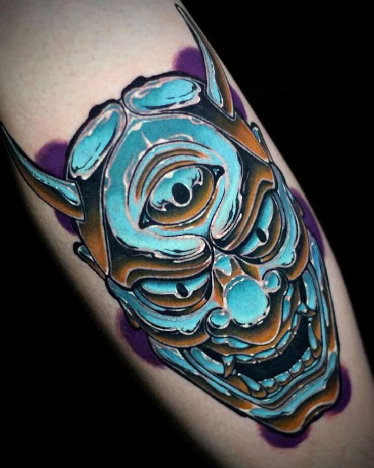 If you love cultural symbolism, a chrome Hannya mask is a gorgeous pick. Those deep blue and purple tones make it feel protective and intense at once. It’s the sort of design that says you know what you want to guard against, and you’re owning that power — plus, you’ll look absolutely badass.