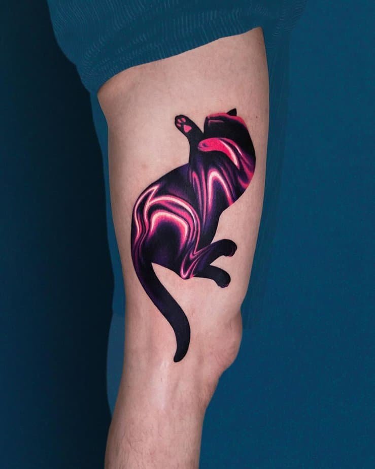 This upper-arm cat mixes chrome with neon pink for a look that’s both edgy and whimsical. It’s quirky, bold, and unforgettable — perfect if you want personality and a little attitude.