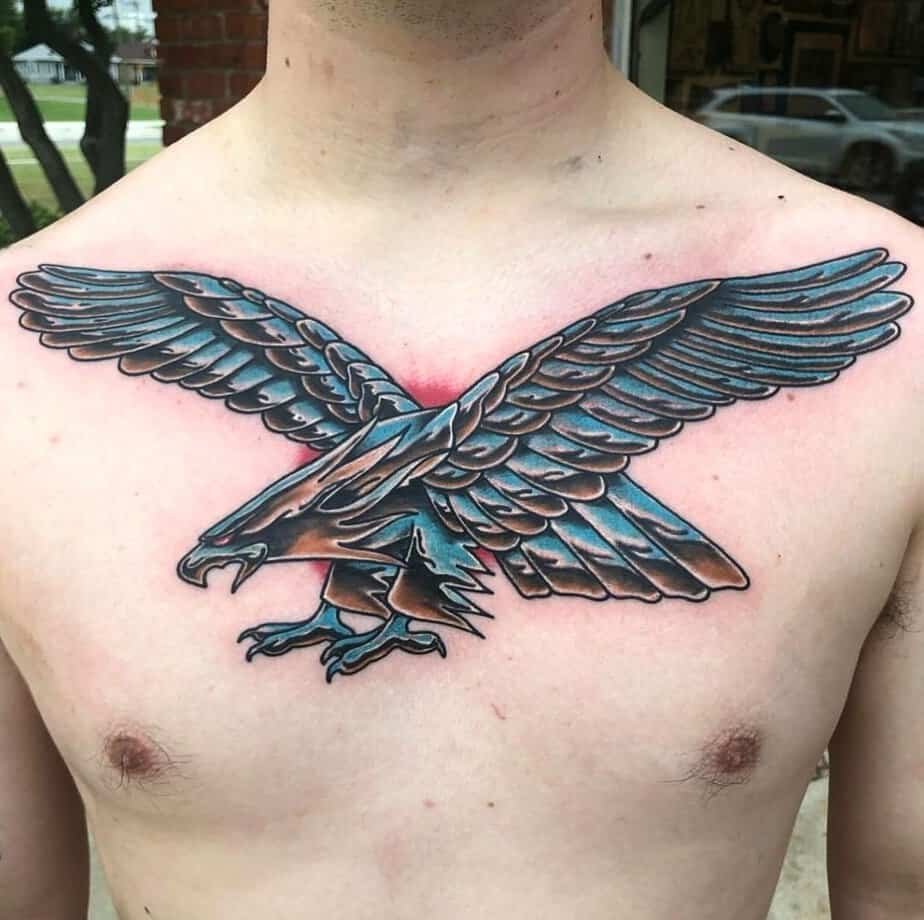 This massive chrome eagle is dramatic in the best way. Spread wings, bold presence — it just points to individuality and finding your own path. If you want a tattoo that feels like a manifesto, this one’s for you.