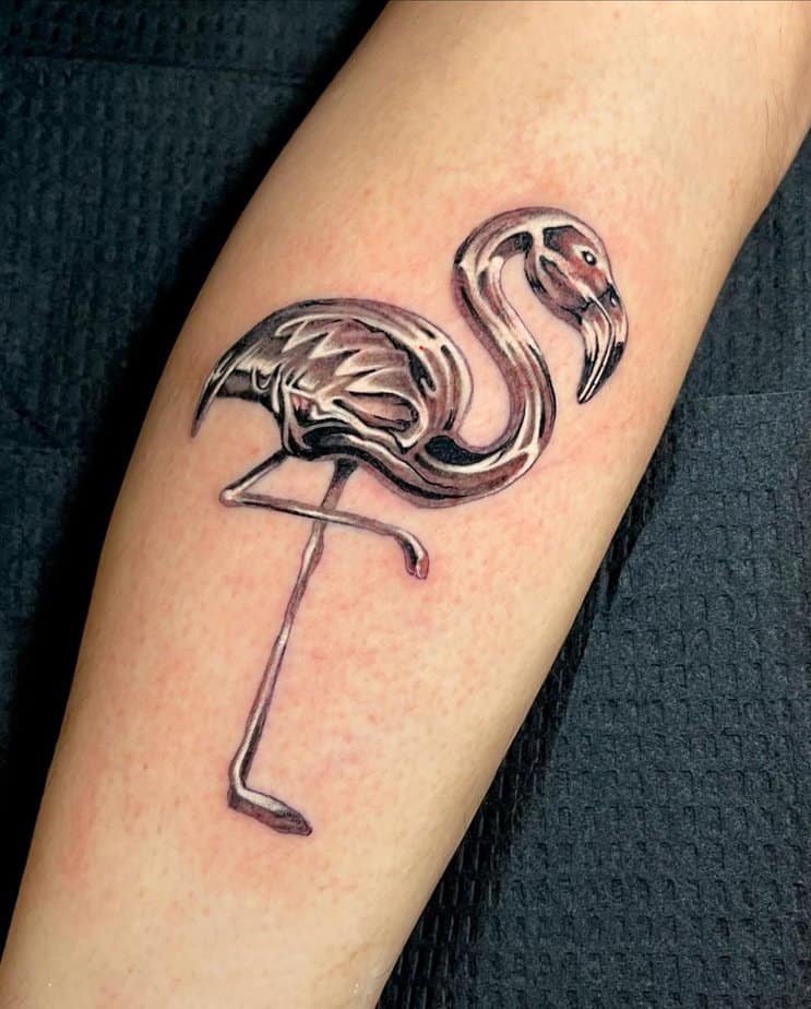 Flamingos are symbols of transformation — they start gray and turn pink — and this metallic version plays with that idea beautifully. It’s graceful, eye-catching, and kind of magical without relying on the expected color palette.