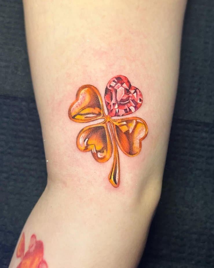 This upper-arm clover has chrome orange and red tones, and one heart-shaped leaf even gets a red pop for extra romance. It’s lucky, yes, but also kind of flirty — like good fortune that knows how to dress up.