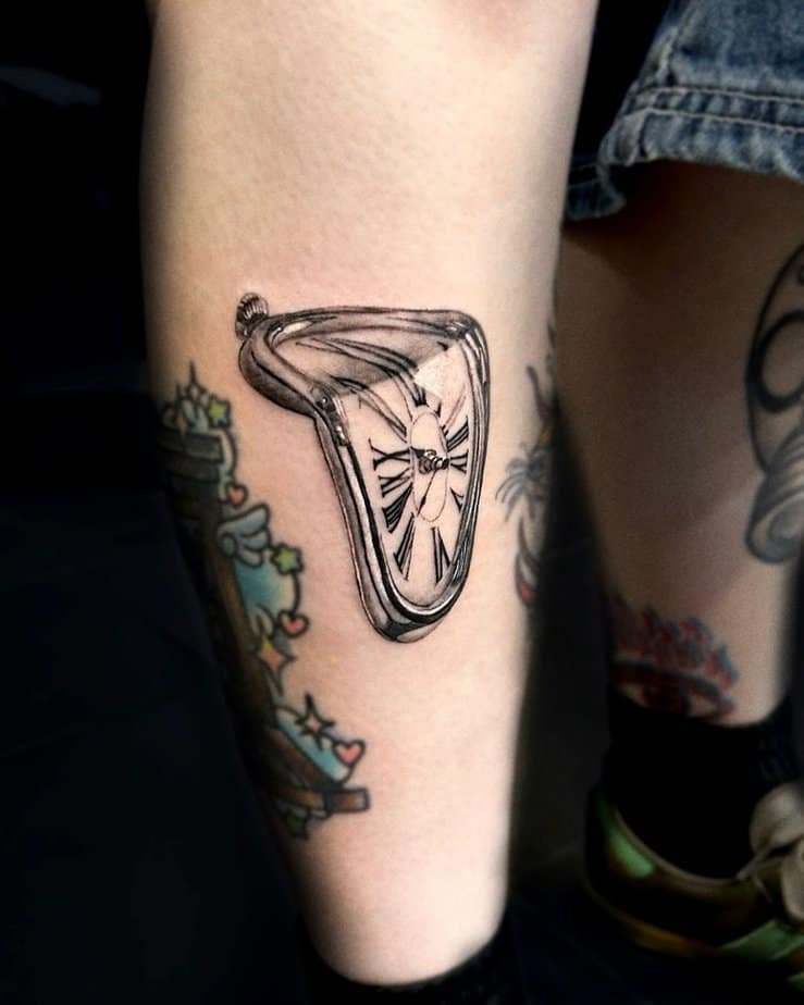 If you love surrealism, a melting clock in chrome is such a clever nod to The Persistence of Memory. It’s a reminder that time isn’t always rigid — it’s messy and subjective — and capturing that in shiny ink feels poetic and a little rebellious.