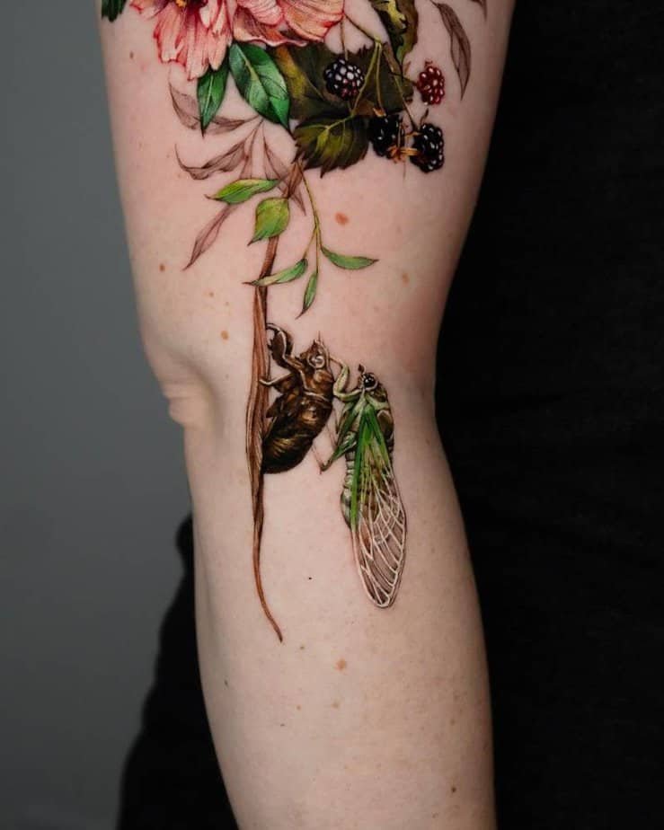 This cicada looks determined, like it’s on a mission. Positioned on the arm, it reads as movement and momentum—great for anyone who sees their life as a series of journeys. It’s bold but not showy, and it carries a little personal pep talk every time you glance at it.