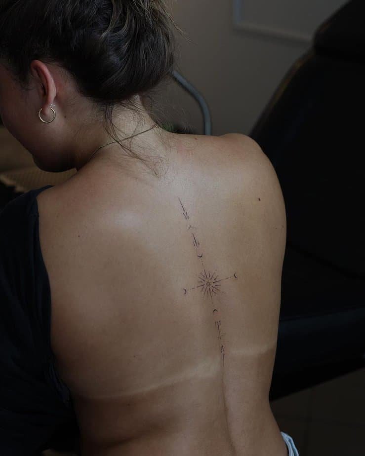 Abstract spine tattoos feel like wearing a small sculpture. If you want something less literal and more interpretive, an abstract piece along the spine reads as fine art — mysterious, thoughtful, and totally unique.