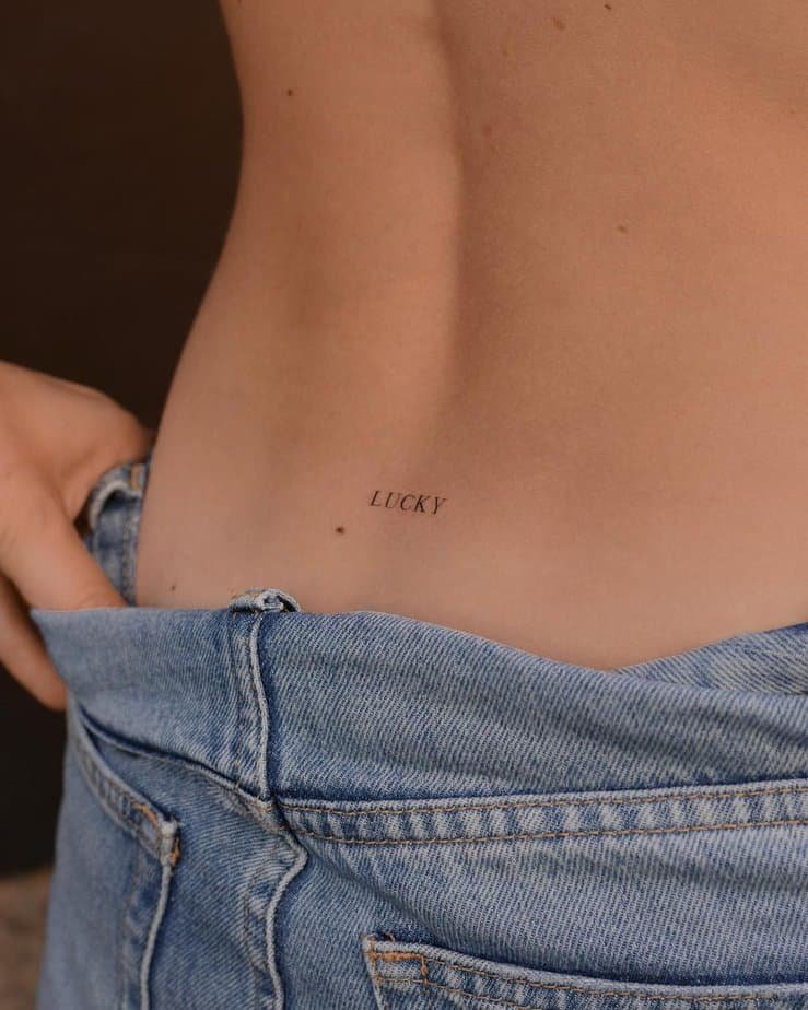 “Lucky” can be playful or sincere — maybe a nod to a moment that changed everything, or just a little joke to make you grin when you catch a glimpse. Either way, single-word tattoos feel chic and intentional.