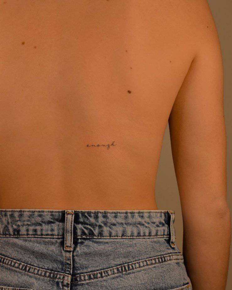 Sometimes you want your skin to repeat a mantra back to you. A small “enough” on your back is such a quiet, fierce reminder that you don’t have to prove anything. It’s simple, direct, and a little rebellious in the best way.
