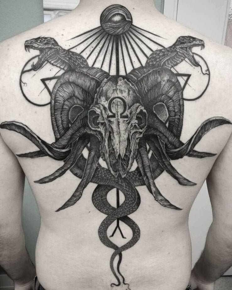 So black-and-gray? Timeless. There’s something low-key powerful about using only black ink — thick outlines, little line details for depth, not a lot of fluff. In this one you might even glance and think it’s just a skull until you catch the horns and fangs; that subtle twist is what sells it. It reads moody, classic, and a little dangerous without shouting.