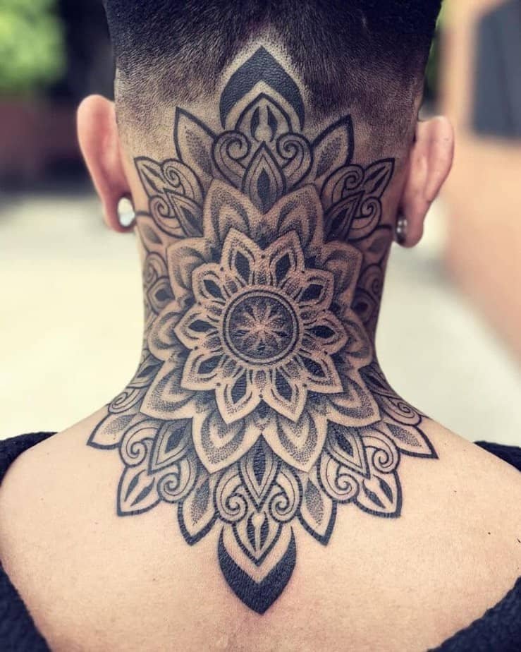 Neck tattoos can be bold if you cover the back of the neck with lines and shapes, or they can be delicate with sparse dotwork. Either approach sends a message, so pick symbols and forms that truly speak to you.