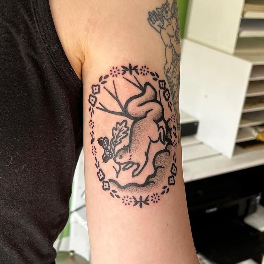 Need something cute? This dotwork squirrel framed by flowers radiates pure delight. It’s small, playful, and a great reminder to lean into joy and the lighter moments.
