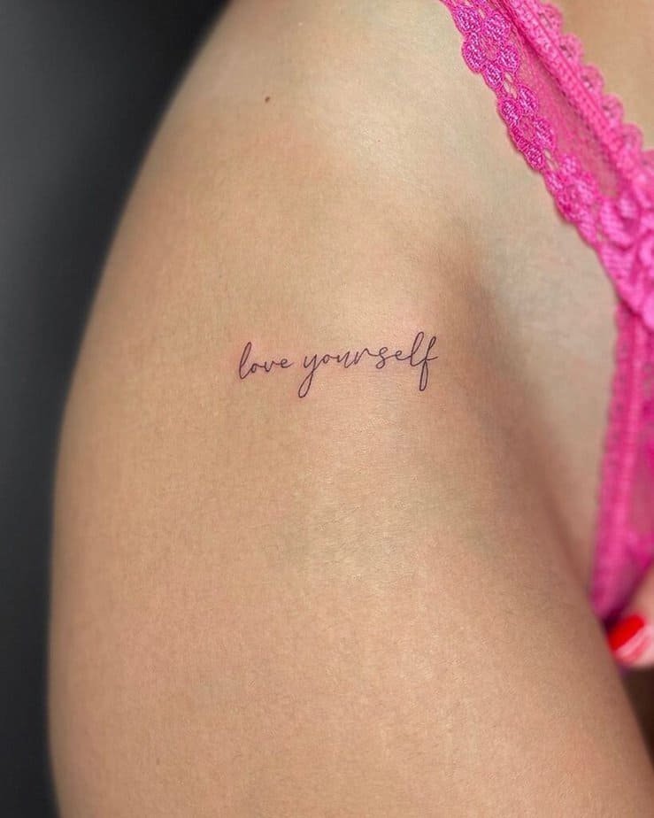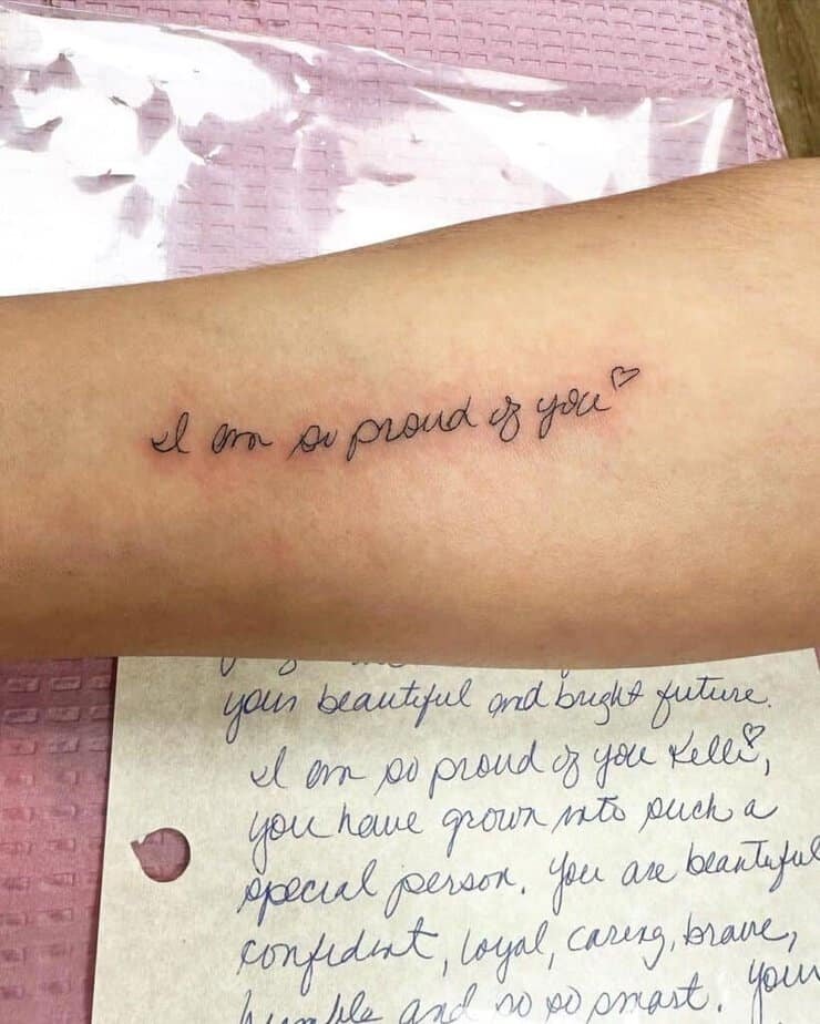 Sometimes the kindest voice you need is your mom or dad telling you to be gentle with yourself. Having "love yourself" inked in their handwriting is a soft, daily reminder that you’re allowed to be kind to the person you’re with 24/7 — yourself.