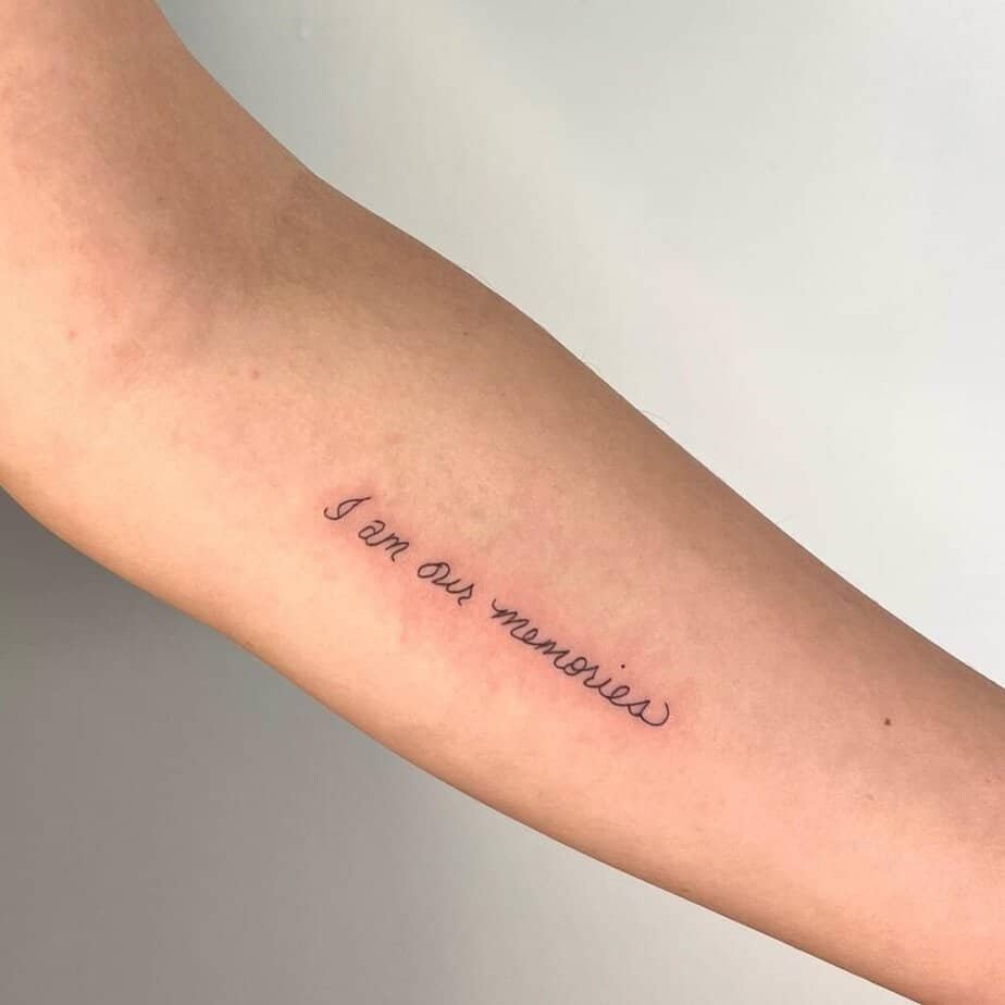 We spotted this phrase and I still think about it. It's both poetic and intimate — great for honoring someone, carrying a shared history, or just reminding yourself how memory shapes you. Handwritten makes it feel like a private line from a story only you know.