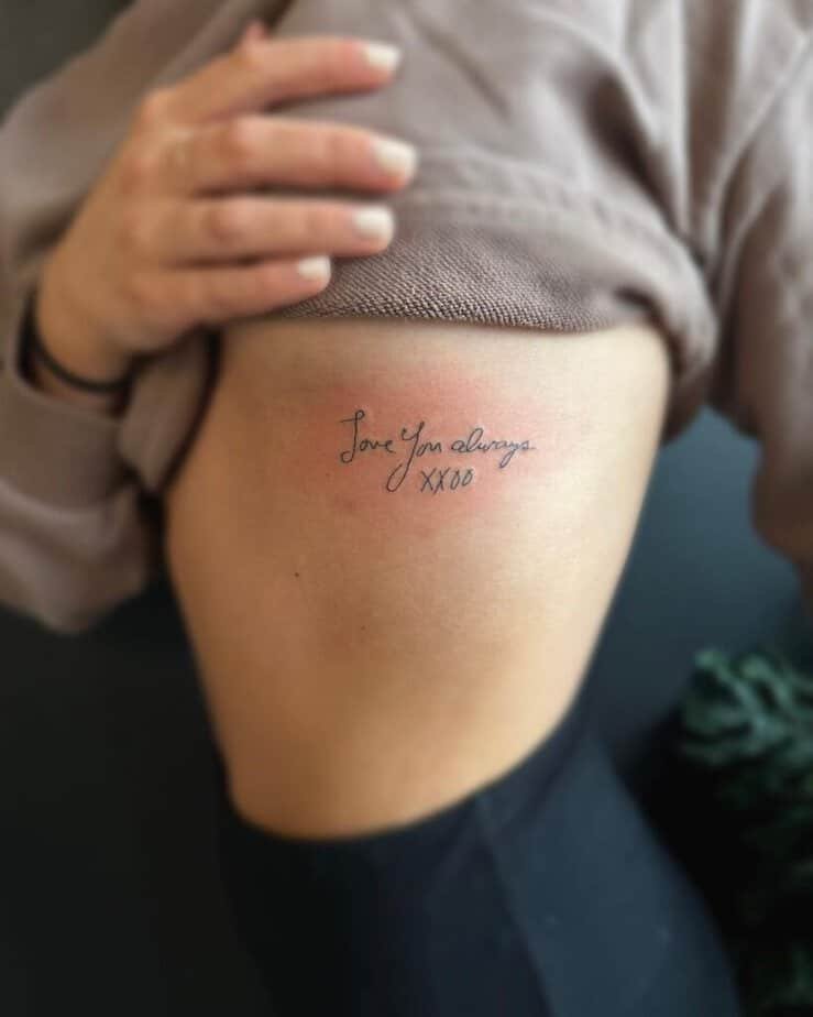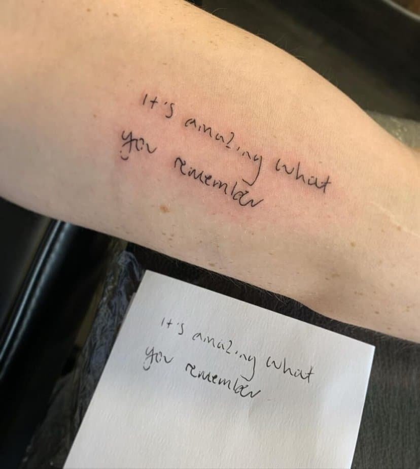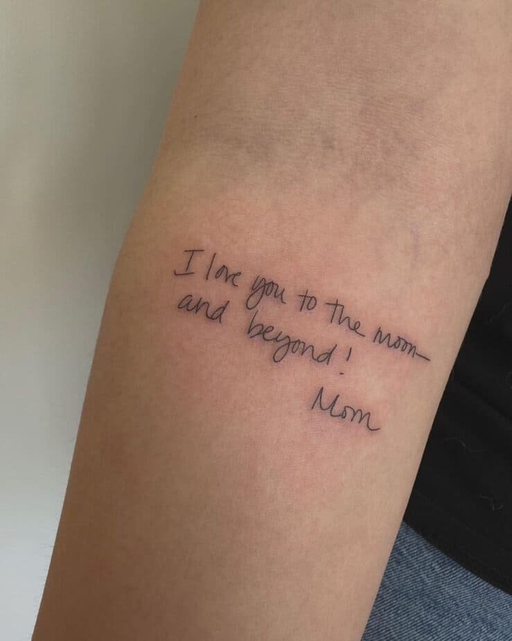 Trending or not, a tattoo from someone who matters is timeless. Your mom’s looping handwriting on your arm or wrist is such a tender way to carry her voice with you — whether it’s advice, a nickname, or a tiny reminder.