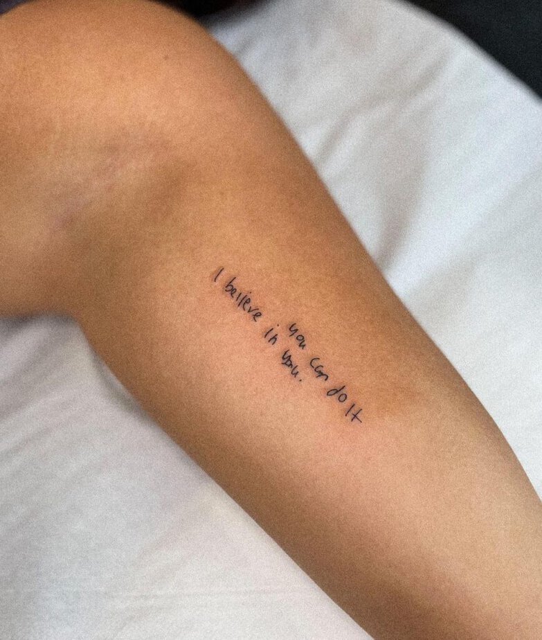 Those words are like a pocket cheer. Seeing "You can do it. I believe in you." on your skin can be the extra boost that gets you through a presentation, an interview, or a tough conversation. Handwriting makes it feel personal and real.