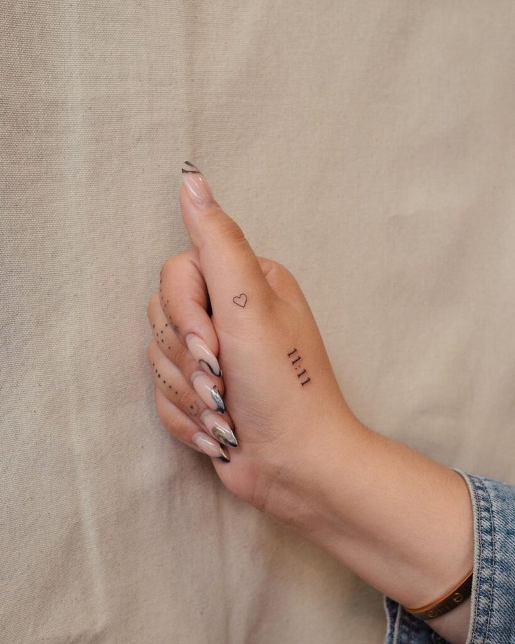 If you’re collecting small, meaningful tattoos, pairing a heart with 11:11 (or another number/word that matters) gives your ink an extra personal layer. It reads like a tiny promise or a secret you carry.