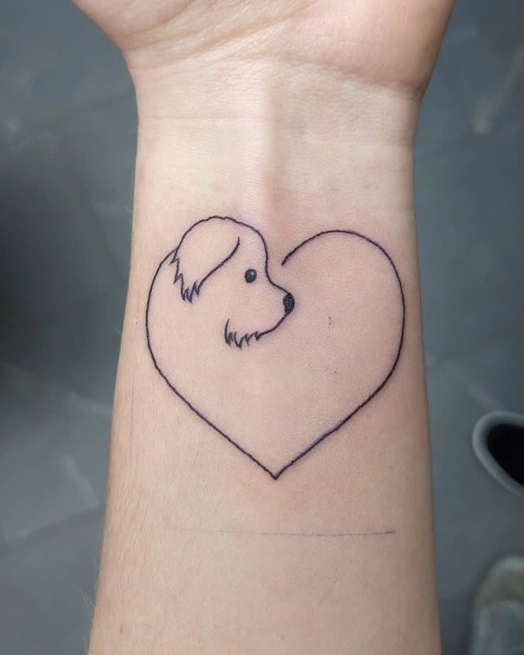 A fluffy dog’s head forming part of the heart outline — if you love your dog like I love mine, this one makes my chest melt. It’s playful and sincere, capturing loyalty, protection, and unconditional love in a single little design.