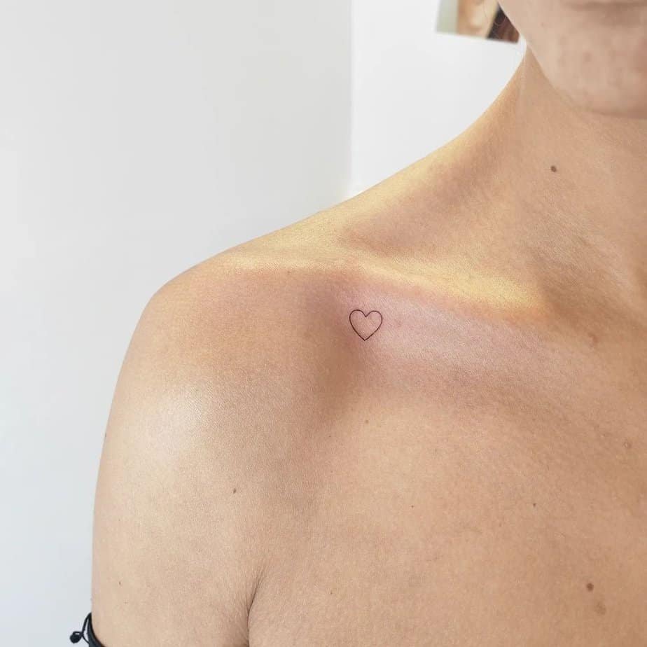 Okay, picture a tiny, delicate heart perched on the collarbone — so subtle you almost miss it, and then you don’t. This fine-line version feels sweet and intimate; it’s small but meaningful, like a little secret you carry with you. If you’re into understated tattoos that still pack an emotional punch, this one’s a cute, low-key choice.