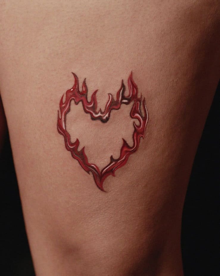 A burning heart on the leg — dramatic in the best way. It screams passion, obsession, or devotion to something that lights you up, whether that’s a person or a creative fire. If you want something bold and expressive, this will definitely stand out.