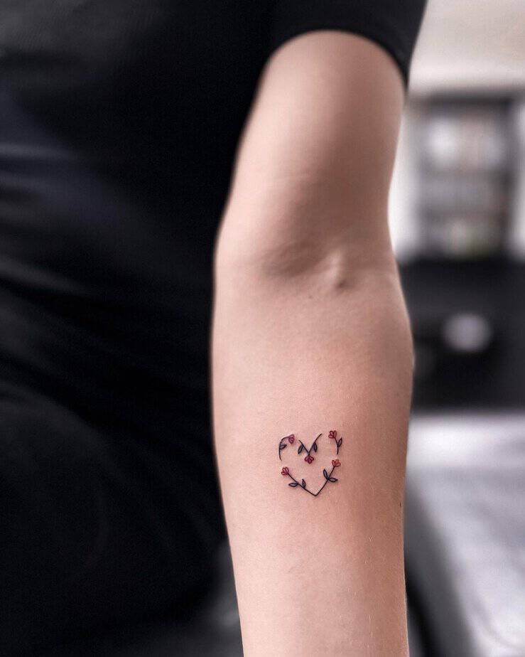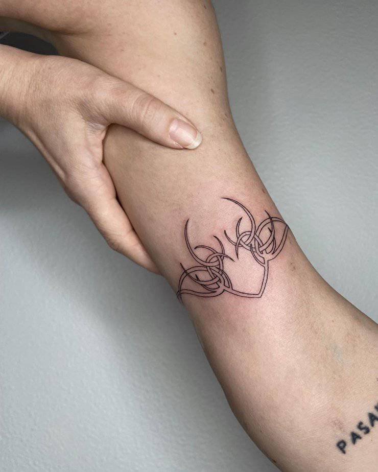 Single-line tattoos have that effortless chic — one continuous stroke making a heart, delicate and artful. It’s understated but creative, and perfect if you want something simple with a little twist. Honestly, you can’t really go wrong with this classic.
