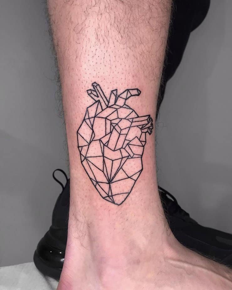 An anatomical heart drawn with geometric lines — it’s sharp, stylish, and somehow both vulnerable and strong. It nods to life, love, and the fragility that comes with opening your chest (figuratively), while still looking sleek and modern. A great pick if you like edgy elegance.