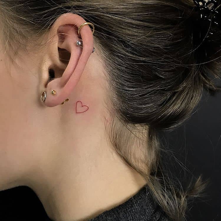 Behind-the-ear tattoos have this intimate, secret energy, and a red-ink heart there feels both tender and a little rebellious. Red makes the symbol punchier — love and passion without needing a giant canvas. Sneaky and sweet.