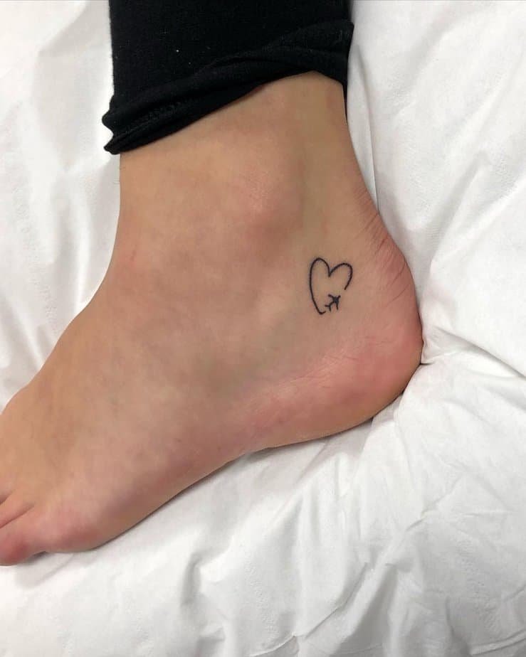 On the foot, a heart outline cleverly formed by a little airplane — such a cute nod to travel and freedom. It feels like a promise to keep exploring, learning, and collecting memories. If your heart lives somewhere between runways and coffee shops in foreign cities, this is the vibe.