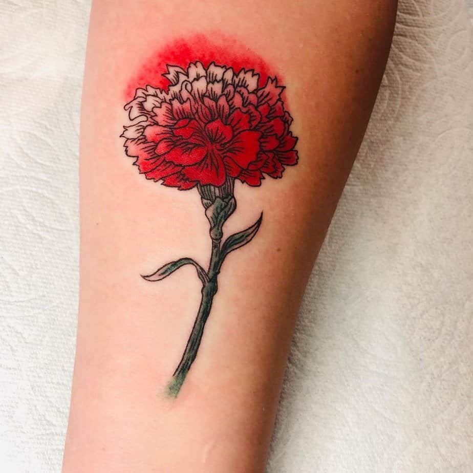 Think of this as a permanent gift: a small red carnation bouquet tied with a bow, symbolizing lasting tenderness. It’s perfect if you want a tattoo that honors someone you love — partner, friend, parent — anyone you hold close.