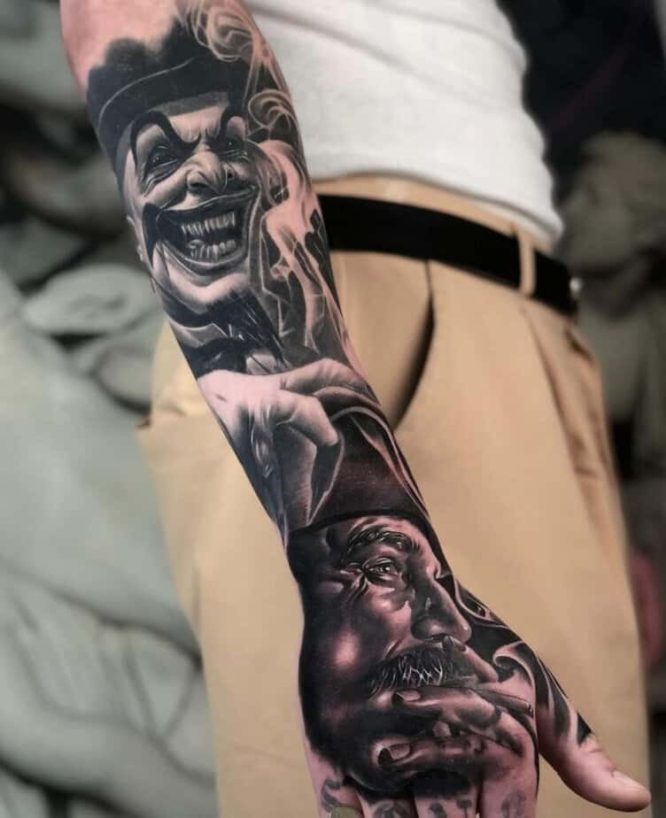 A sleeve of Joker tattoos: mix and match freely
