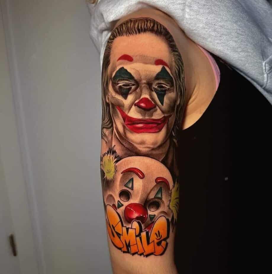 Joaquin Phoenix’s Joker on the upper arm: raw and cinematic