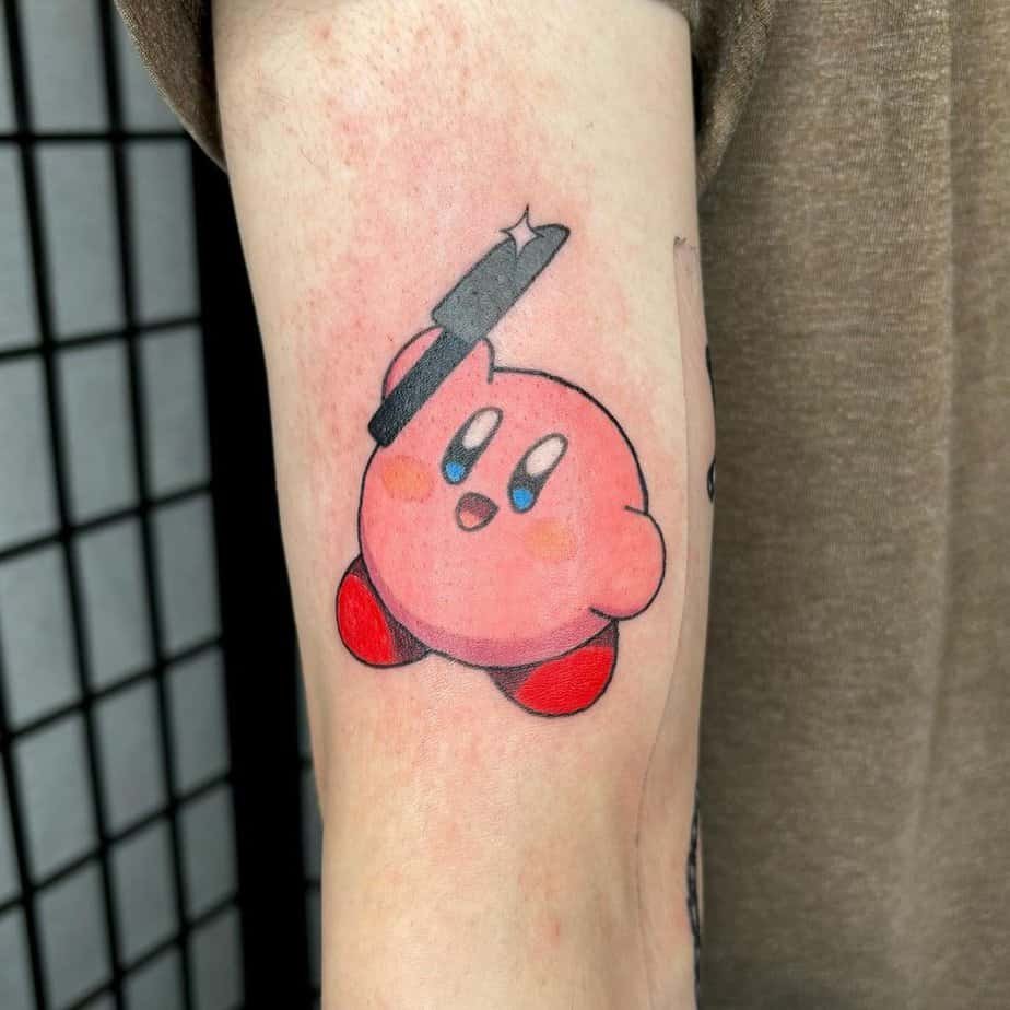 At first glance it’s hilarious: sweet Kirby with a tiny knife. But it’s actually a reference to his Chef ability, which makes the whole thing playful rather than edgy. It’s the kind of tattoo that makes you laugh and remember how inventive the character designs are.