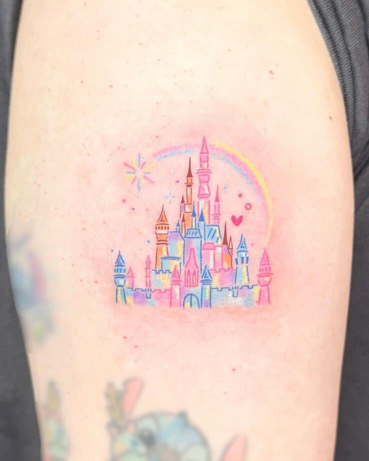 If you want to feel whimsical and soft, a pastel Disney castle with a little rainbow is the move. It’s playful and magical without being over the top — a sweet nod to childhood wonder that also leans into a very feminine, dreamy aesthetic.