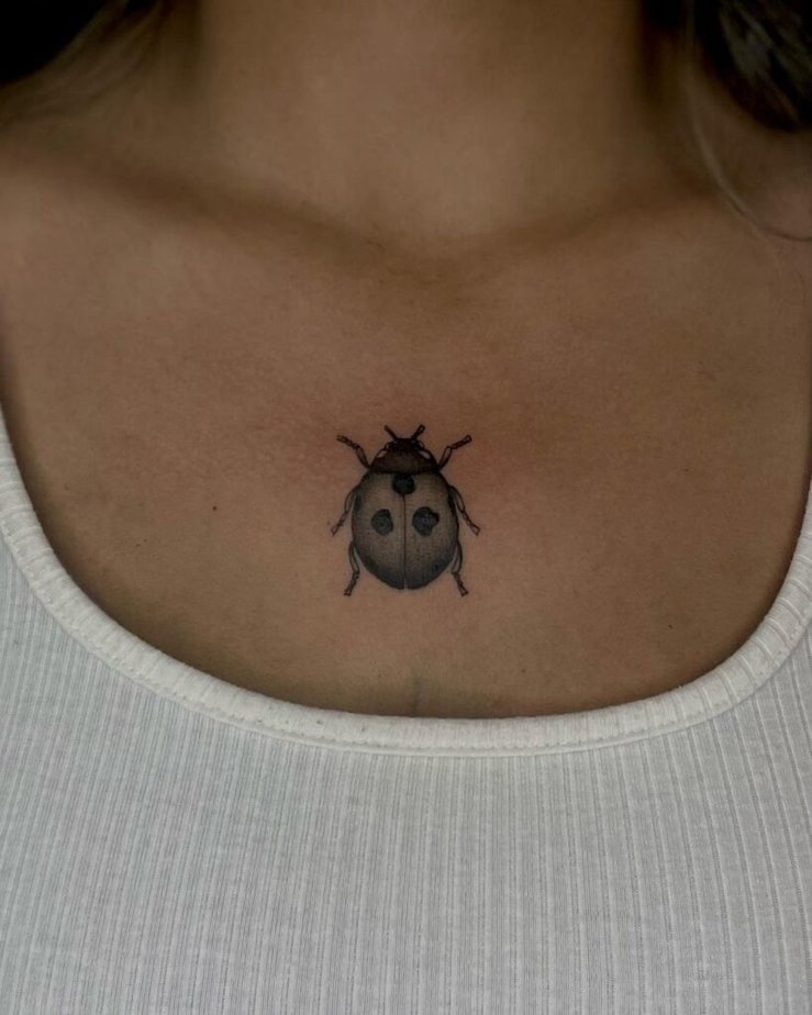 Chest tattoos can be surprisingly delicate. A ladybug there feels daring but intimate — like a quiet declaration right over your heart.