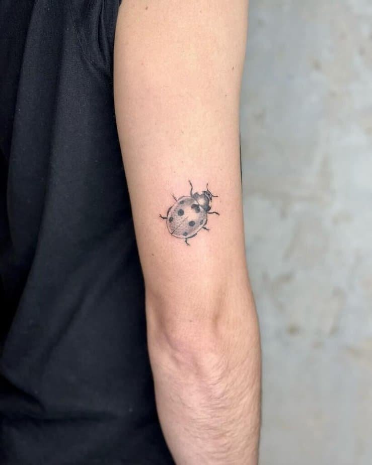 Looking for something straightforward? An upper-arm ladybug is a solid choice. You can keep it fine-line and black-and-gray for a subtle look, or add color if you want the red to pop and the meaning to sing.