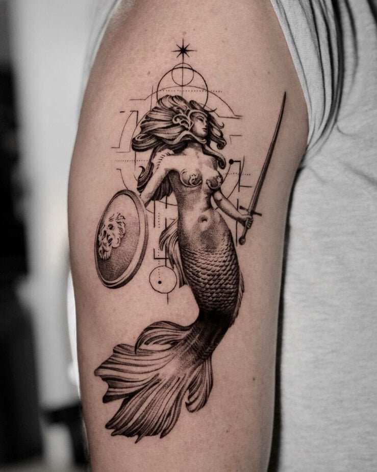 A mermaid sitting on a seashell, clutching a pearl? Iconic. This is the kind of tattoo that takes a little more time and attention, and that’s part of the charm — it’ll turn heads and tell a story without you having to say a word.