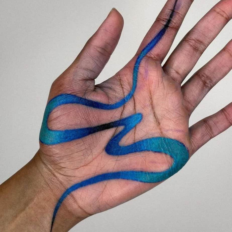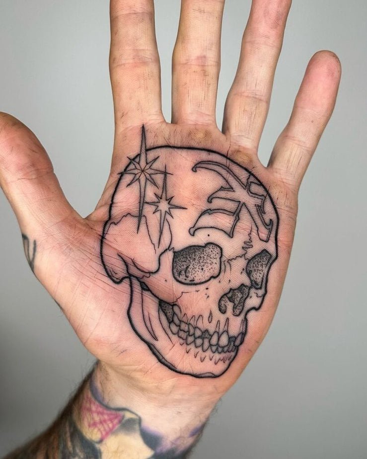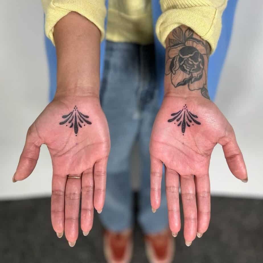 Black is classic, but red, pink, or even white ink on the palm can feel playful and unexpected. Since palm tattoos can fade faster, experimenting with color can be a fun way to make a bolder statement while it lasts.