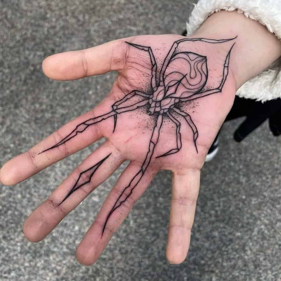 Spiderweb palm tattoos — story-heavy and bold