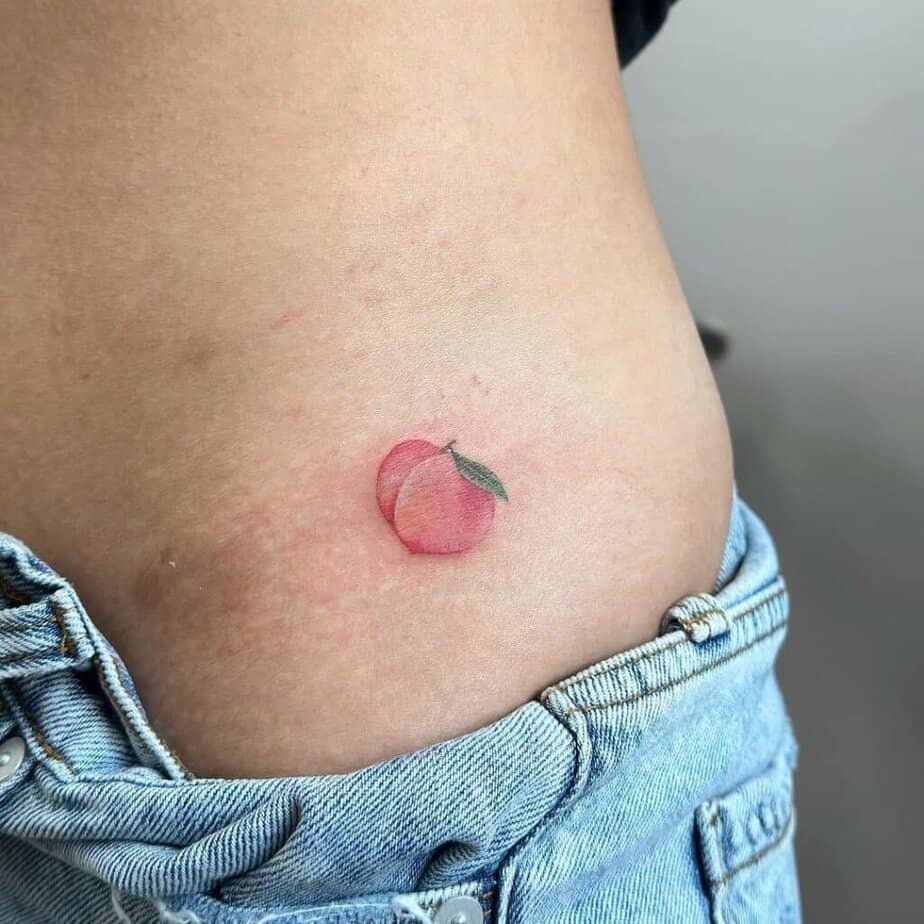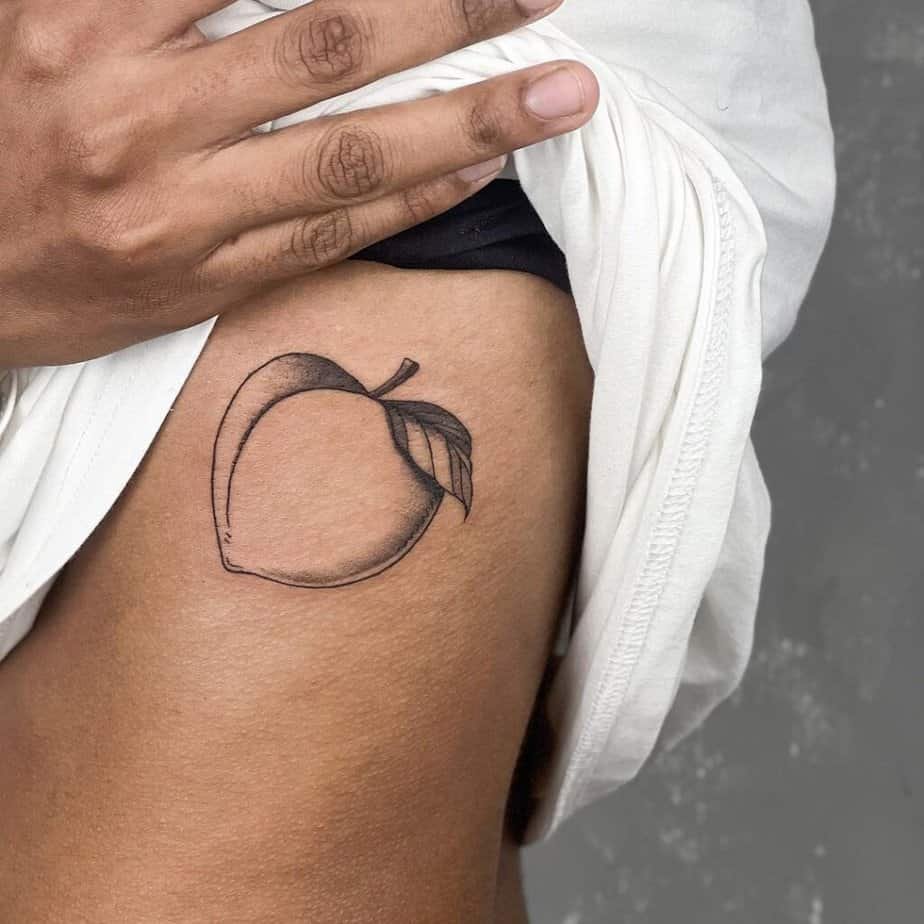 Rib tattoos hurt, sure, but they’re gorgeous. A peach there can feel protective, soft, and a little secretive — like wearing a piece of your heart on the inside.