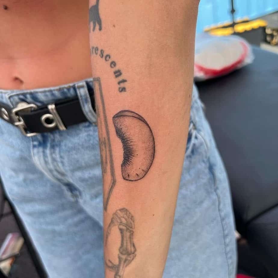 Remember those fruit stickers from boxes? A peach tattoo that mimics that aesthetic feels cheeky and nostalgic. It’s perfect if you love a playful, graphic look.