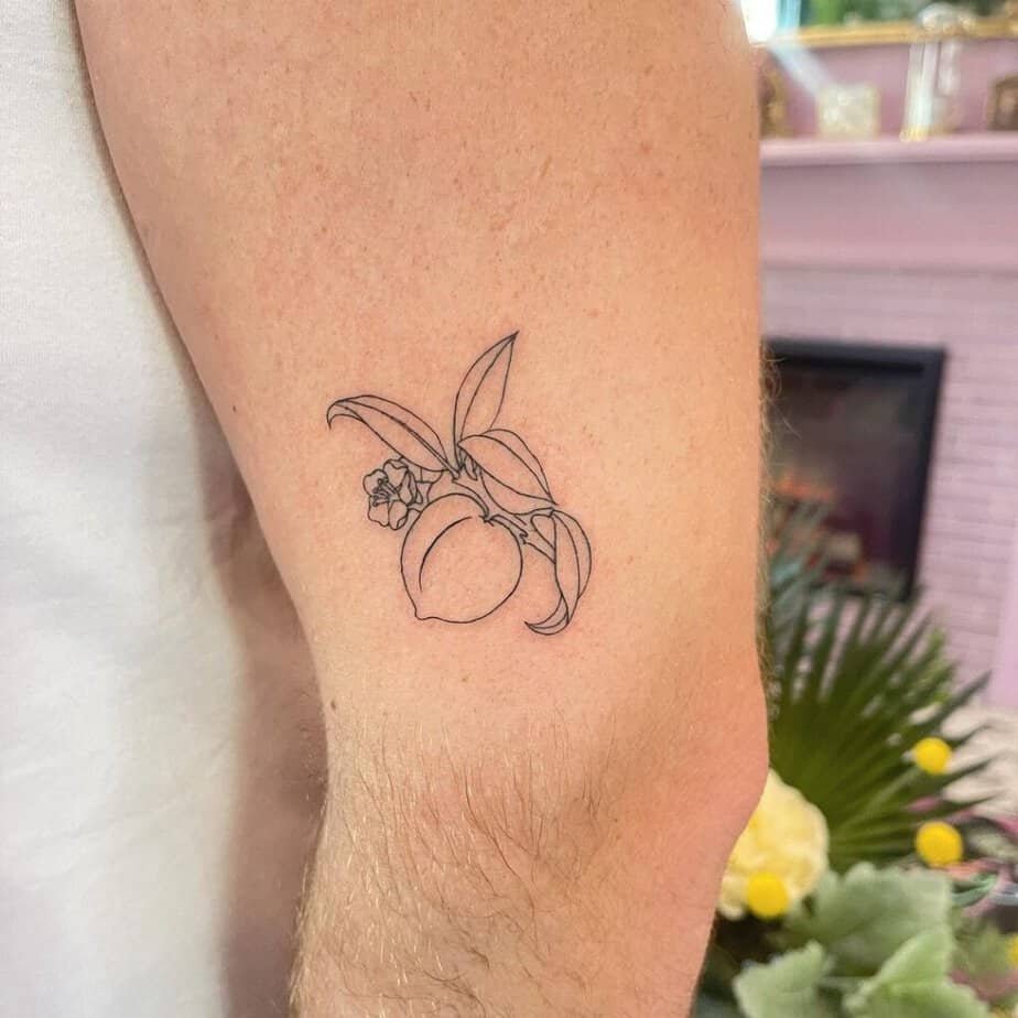 Fine-line tattoos are everywhere for a reason — they’re modern, classic, and look effortless. A peach done in that thin, precise linework reads fresh and fashion-forward. If you want something that complements everything you wear, this might be the one.