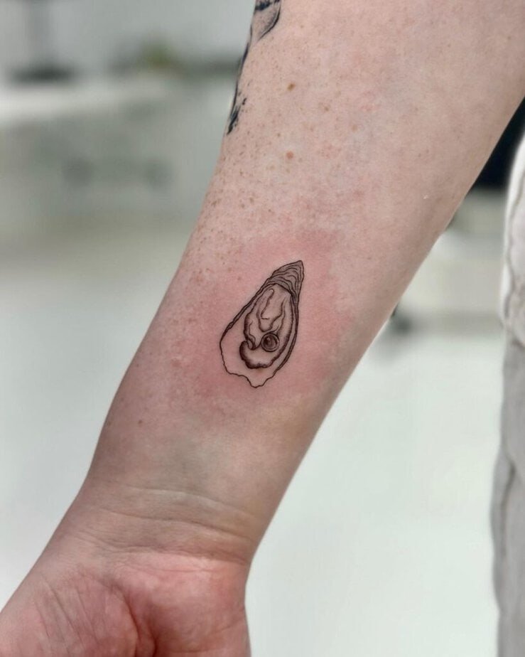 Tiny oyster-pearl wrist tat for a delicate vibe
