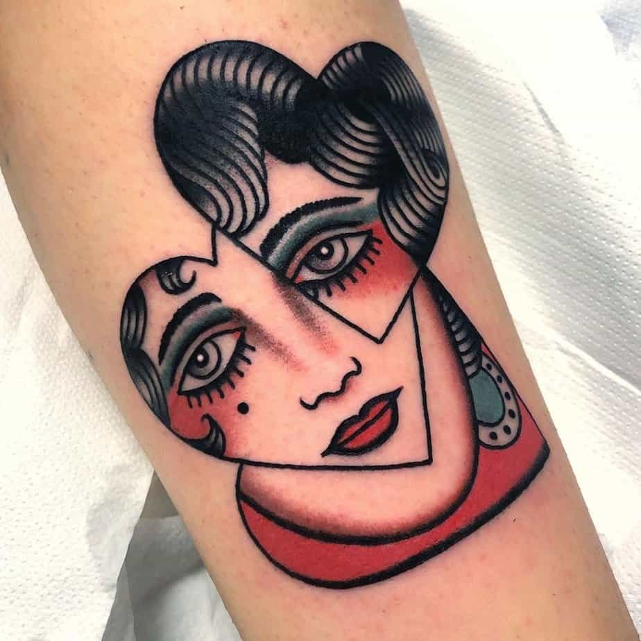 This one brings vintage charm into the now with lively colors and a mischievous smile. It feels fresh and fun, like the queen is ready to charm everyone in the room. It’s an awesome pick for someone who wants ink that’s nostalgic but full of personality.