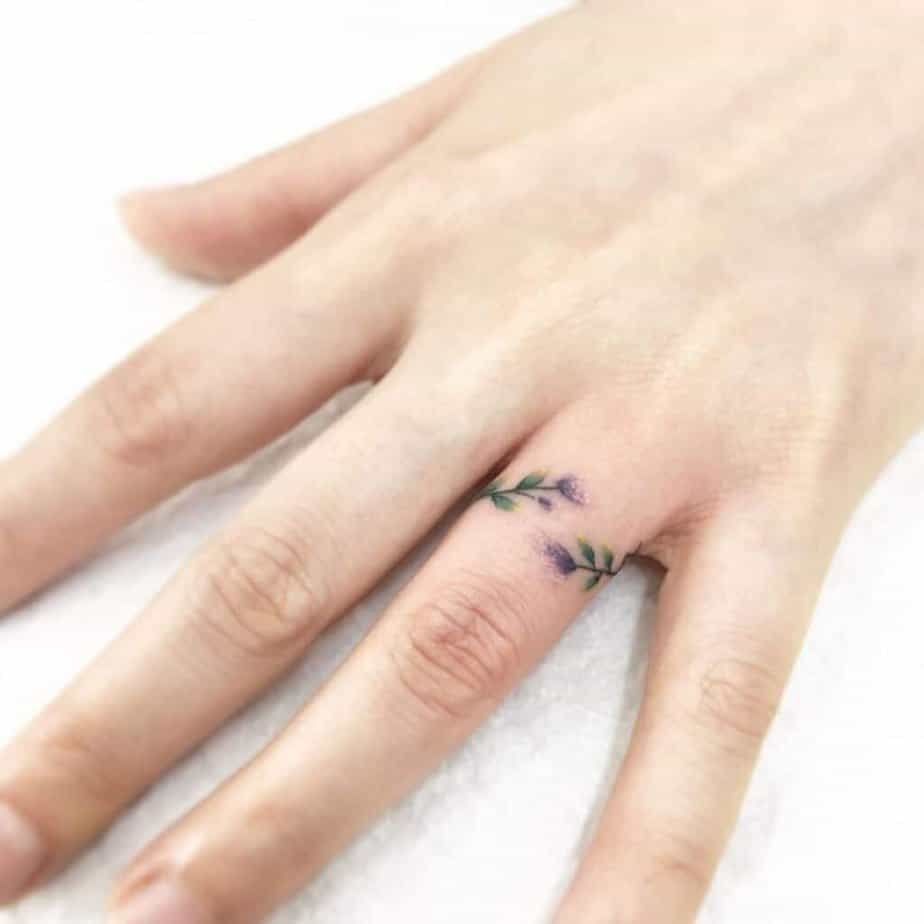 Flower ring tattoos are endlessly charming. Go colorful and playful or black-and-chic — either way, florals are classic and romantic. They age beautifully and feel feminine without being fussy.